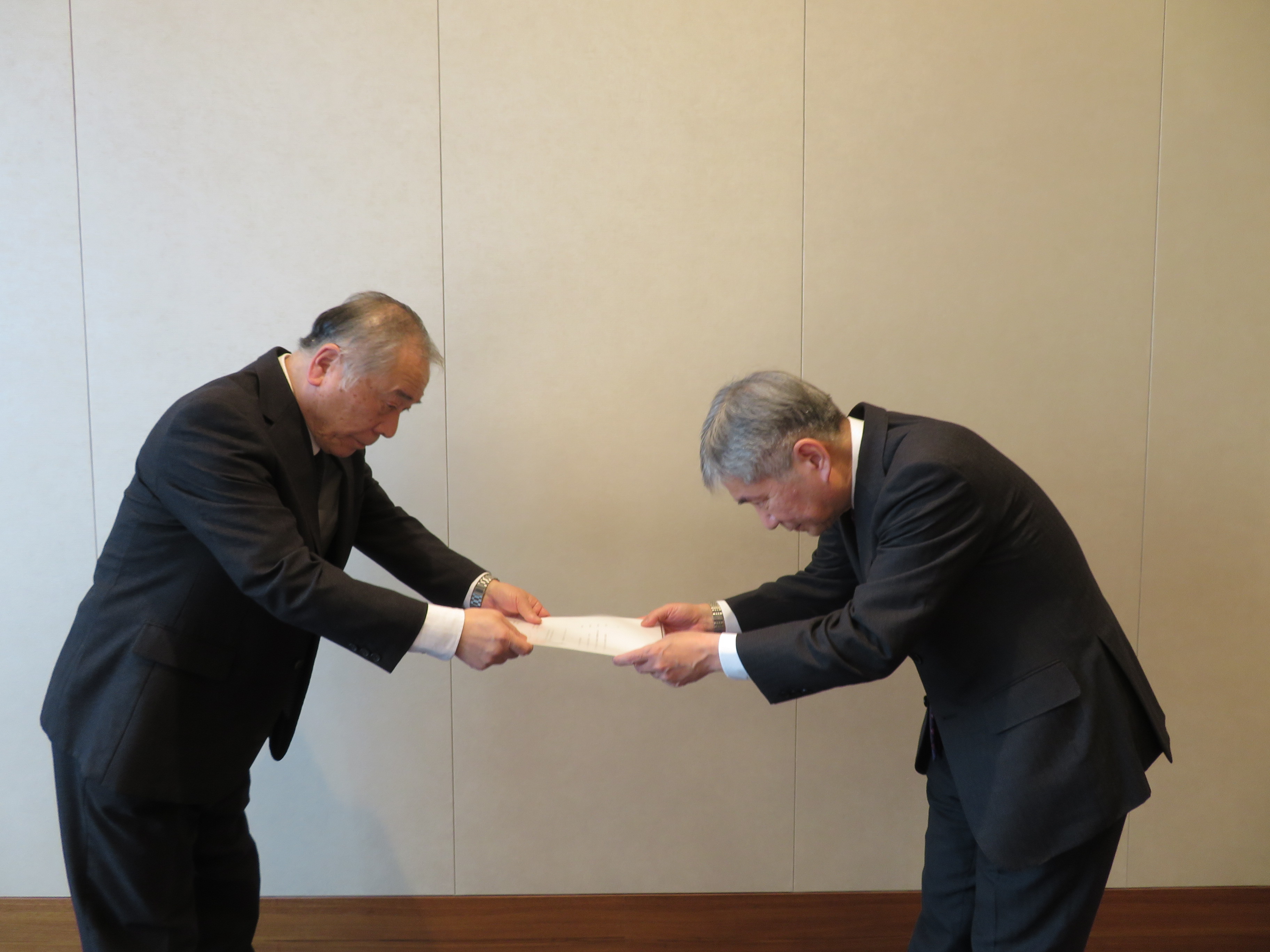2026.03.19 前野直道理事長が森永乳業の大貫陽一社長に2026年度の事業計画書及び収支予算書を